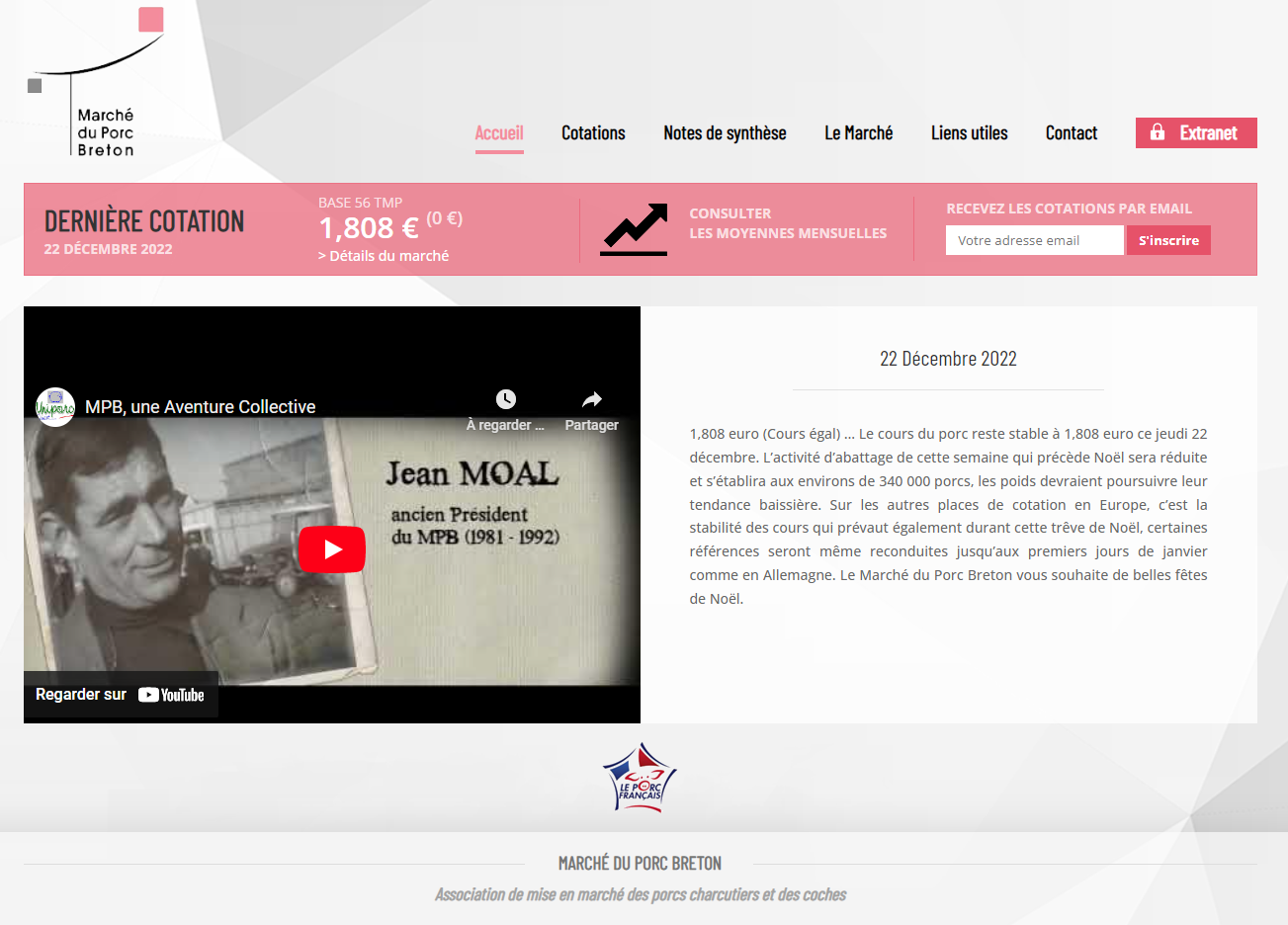 Dans ce cadre, nous avons redéveloppé le logiciel d’enchères décrémentielles permettant la cotation. Le marché est désormais accessible en temps réel, et de n’importe où. Un extranet de gestion du MPF a également été mis en place (système d’annonces, génération du catalogue, calcul des quotas, etc..).